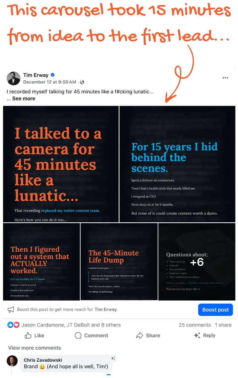 A year from now, you've built a real personal brand that generates leads and revenue automatically.