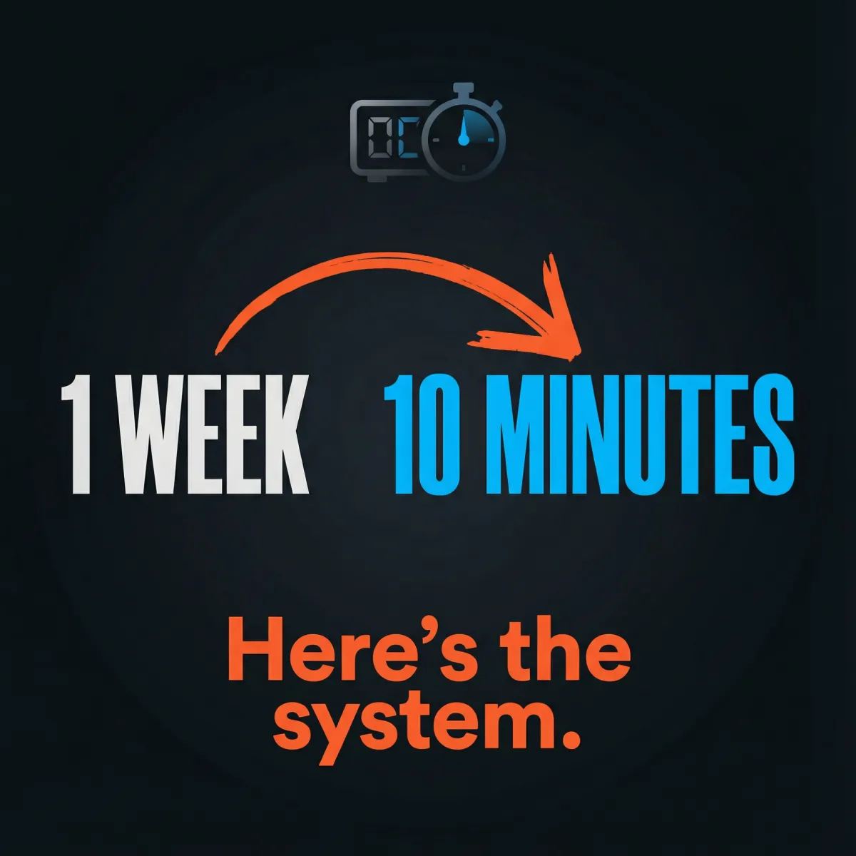 Building the system: 90-120 minutes one time. Creating content weekly without it: 7+ hours. Creating content weekly with it: 20 minutes.